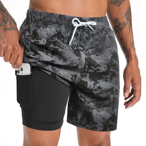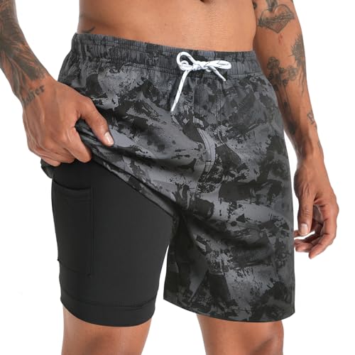 zeetoo Mens Swim Trunks with Compression Liner 5.5″ Inseam Swim Shorts Quick Dry Shorts