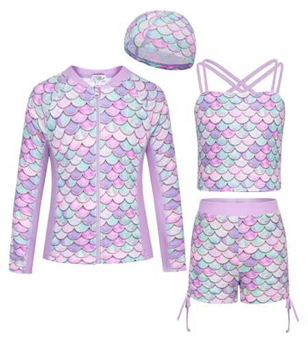 Danna Belle Girl Long Sleeve Swimsuit Floral Rushguard Swimwear 4Pcs Bathing Suits Zipper Size 5-12