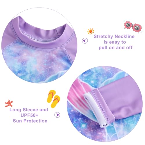 Funnycokid Girls Rash Guard Swimsuit Set Long Sleeve Two Piece Bathing Suit with UPF 50+ UV 2-10 Years