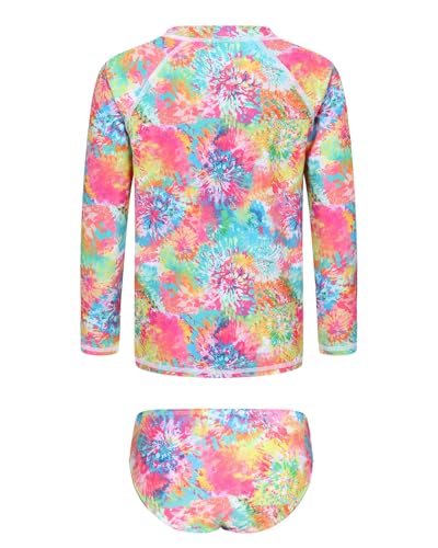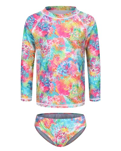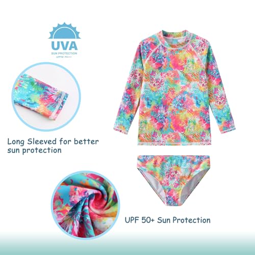 Girls Long Sleeve Rash Guard Set Tie Dye Bathing Suits Two Piece Swimsuits for Kids Swim Shirts 3-16 Years