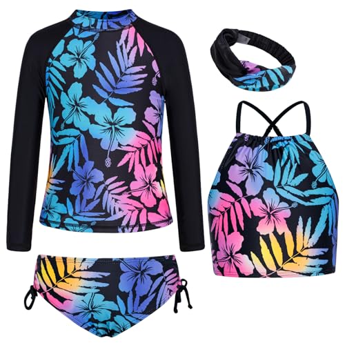 GRACE KARIN Girls Swimsuit Tankini Rash Guard Long Sleeve 4 Piece Bathing Suit 5-12Y
