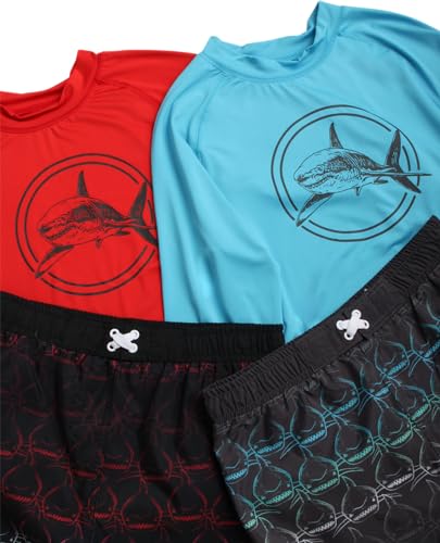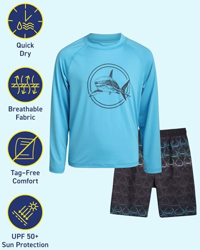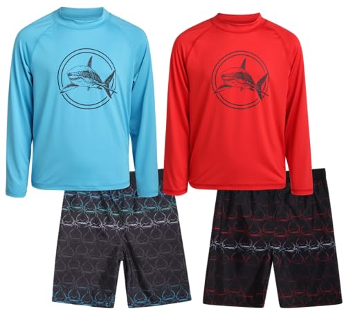 iXtreme Boys’ Rash Guard Set – 4 Piece UPF 50+ Swim Trunks and Long Sleeve Swim Shirt (12M-14)
