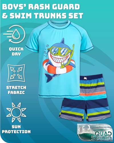 Specification: Quad Seven Boys’ Rashguard Set – Short Sleeve Swim Shirt and Bathing Suit Set (4 Piece)