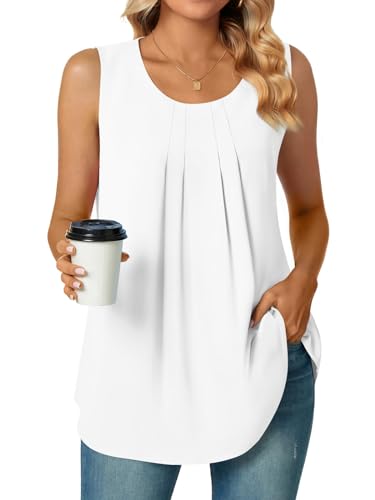 Bestbee Women’s Dressy Chiffon Blouses Crew Neck Sleeveless Tunic Tops Office Cute Work Shirts 2024 Summer Casual Tank Tops