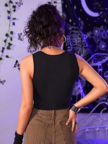 Floerns Women’s Cut Out Sleeveless Round Neck Punk Rock Solid Ripped Crop Tank Top