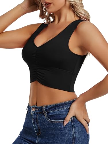 Heihonae Sexy Crop Tops for Women V Neck Plunge Ruched Sleeveless Going Out Cropped Tank Top