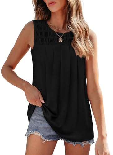 OFEEFAN Womens Tank Tops Summer Pleated Crew Neck Sleeveless Tops for Women Ruched Loose