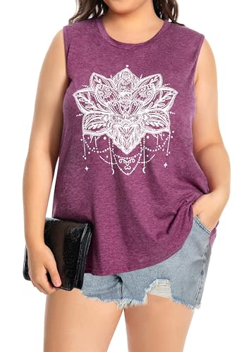 Plus Size Tops for Women Sleeveless Summer Tank Top Loose Fit Casual Tunics Shirts