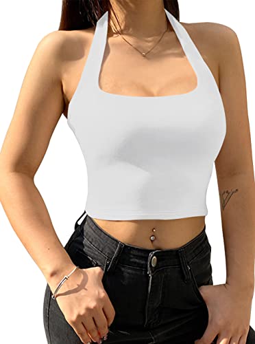 Specification: REORIA Women’s Sexy Halter Neck Backless Seamless Sleeveless Y2K Cropped Tank Yoga Crop Tops