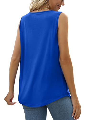 Saloogoe Summer Tank Tops for Women Loose Fit Pleated Tunics Scoop Neck Sleeveless Lace Tops Curved Hem Flowy