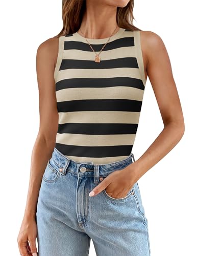 Specification: ZESICA Women’s Summer Knit Striped Tank Tops 2024 Trendy Crewneck Sleeveless Shirts