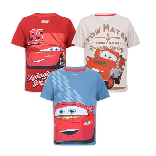 Disney Cars Boys’ 3 Pack T-Shirts for Toddler and Little Kids – Blue/Yellow/Red/White