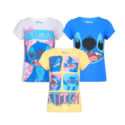 Disney Girls’ Lilo and Stitch 3 Pack T-Shirts for Little and Big Kids– White/Yellow/Blue