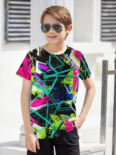 RAISEVERN Boys Girls 3D Graphic Printed T-Shirts Unisex Short Sleeve Summer tees for 4-14 Years
