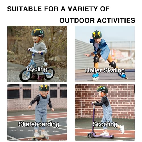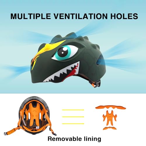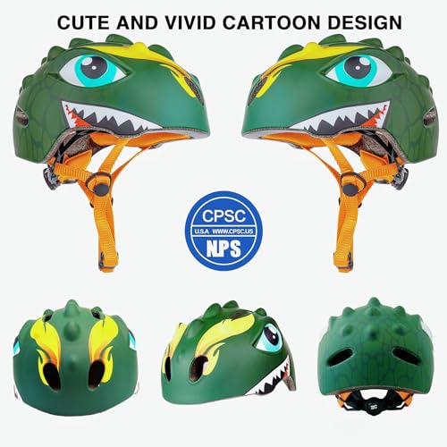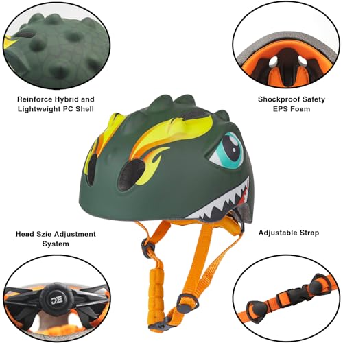 Specification: Toddler Helmet Kids Bike Helmet for 3 4 5 6 7 8 Years Old Kids with 3D Dinosaur Design Protective Gear Set and Safety Certified, Toddler Bike Cycling Skating Skateboard Scooter Helmet