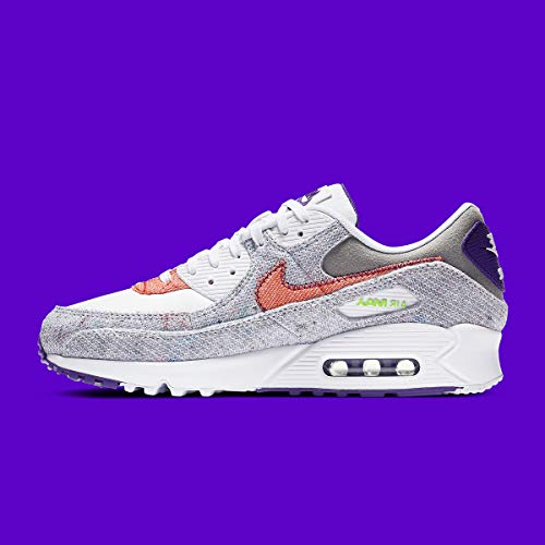 The Air Max 90 NRG sneaker celebrates the thirtieth anniversary of the creation of the unique model. Monochrome Material higher with pretend leather inserts. Flat laces with 1990-2020 detail with pearl colours at the front. TPU. Material padded tongue with brand leather patch. Swoosh and TPU inserts brand in tone at the facets. Padded collar and bolstered heel. TPU brand insert at the back. Material lining. Leather logoed insole. Rubber sole with Air Max unit visible at the heel.