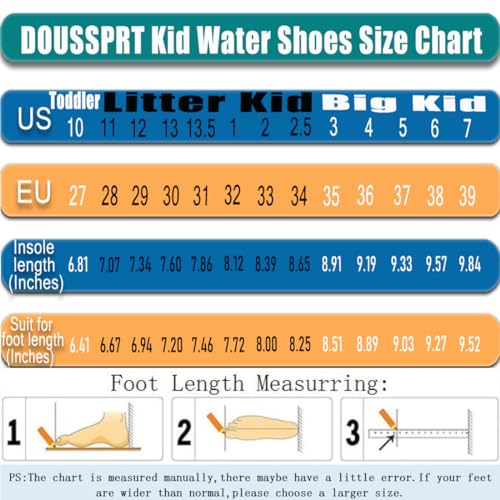 Specification: DOUSSPRT Water Shoes for Kids Boys Girls Quick Dry Beach Sports Swim Pool Aqua Shoes for Toddler/Little Kid/Big Kid