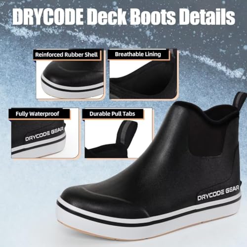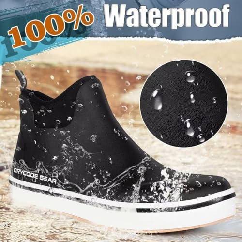 D DRYCODE Rain Boots Men, Waterproof Fishing Deck Boots, Anti-Slip Ankle Rubber Boots, Outdoor Rain Shoes for Mens Boating, Womens Gardening, Size 5-14