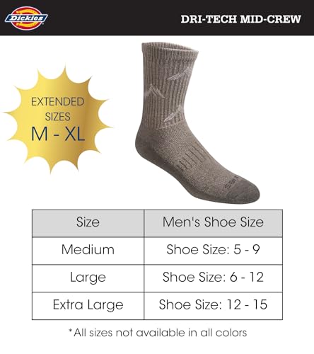 Dickies Men’s Dri-tech Moisture Control Comfort Length Mid-Crew Socks
