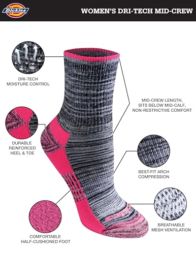 Specification: Dickies Women’s Dri-tech Advanced Moisture Wicking Mid-Crew Socks (6 Pairs) (M)