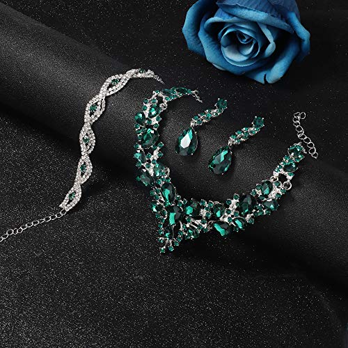 FIASASO Silver Bridal Jewelry Set for Women Rhinestone Wedding Necklace Bracelet Dangle Earrings for Bride Bridesmaid Prom Jewelry Accessories
