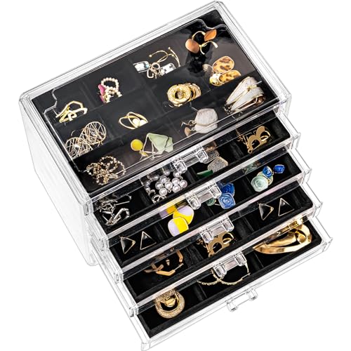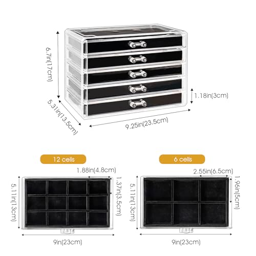Specification: Earring Holder Organizer Jewelry Box with 5 Drawers Mothers Day Gift, Acrylic Clear Earring Case with Adjustable Velvet Trays for Women – Black, 5 Layers