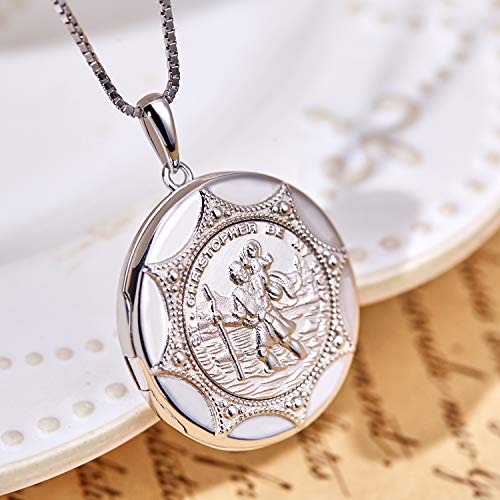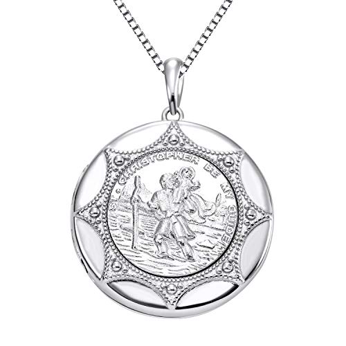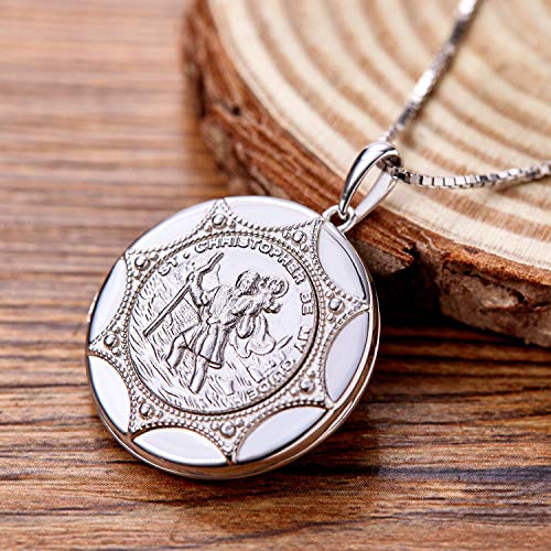 Specification: YL St Christopher Necklace Solid 925 Sterling Sliver Personalized Engraved Round Medallion Antiqued Religious Protector Talisman Pendant, Medal/Laced/Locket