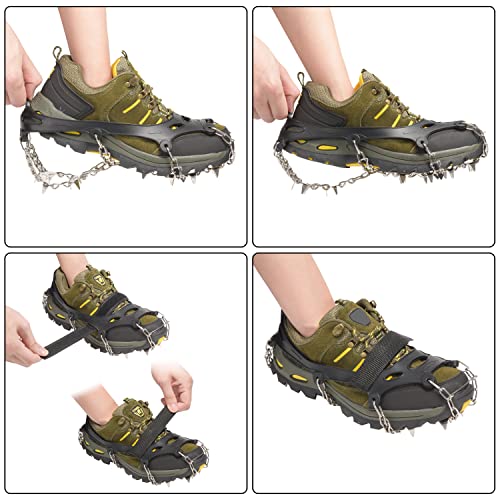 Ice Snow Grips,Traction Cleats with 19 Stainless Steel Spikes Slip for Men and Women, Ice Cleats for Shoes and Boots for Hiking Walking Camping Jogging Ice Fishing