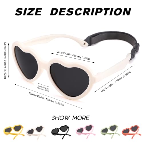 Specification: Pro Acme Kids Heart Sunglasses with Strap Polarized TPEE Rubber Flexible Frame Lovely Sun Glasses for Girls Boys Age 3-8