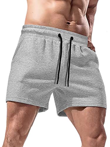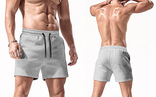 Men’s Cotton Running Shorts with Pockets 5 Inch Workout Bodybuilding Training Shorts
