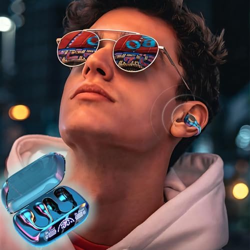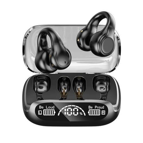Specification: Open Ear Clip on Headphones, Wireless Skeleton Conduction Earbuds Bluetooth 5.3 Sport Earphones Built-in Mic with Ear Hooks LED Display Charging Case for Running Fitness, Black Prime Of Day Deals 2024