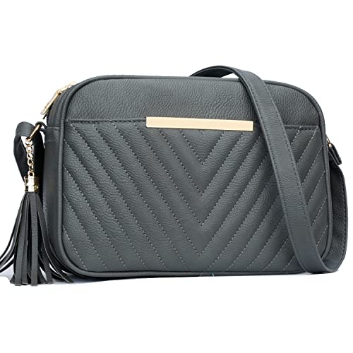 KKXIU Quilted Double Compartment Multiple Pocket Crossbody Bag for Women and Teen Girls Stylish Shoulder Purse with Tassel