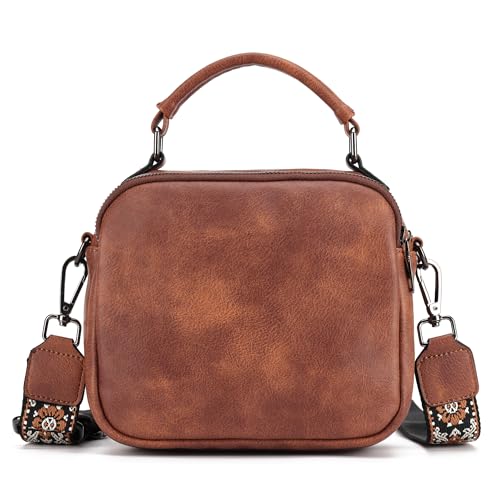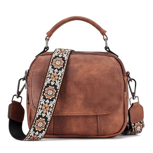OPAGE Small Leather Crossbody Bags for Women, Cross Body Shoulder Handbags Crossbody Purses for Women with Top Handle