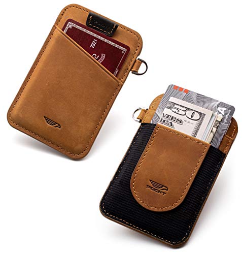 POCKT Card Holder Wallet For Men and Women – Slim Minimalist Front Pocket Wallet Elastic Credit Card Holder Genuine Leather RFID Blocking Card Case Wallets