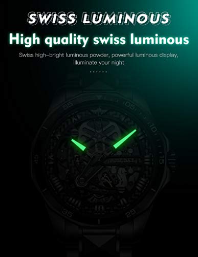 OLEVS Mens Automatic Watches for Men Skeleton Mechanical Luxury Black Silver Wrist Watches Waterproof Luminous Sapphire Crystal
