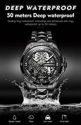 Specification: OLEVS Mens Automatic Watches for Men Skeleton Mechanical Luxury Black Silver Wrist Watches Waterproof Luminous Sapphire Crystal