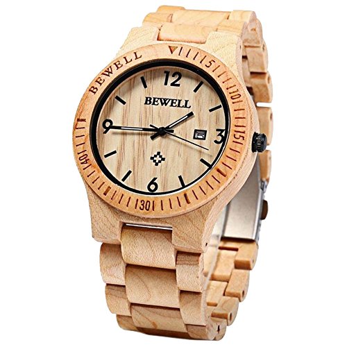Specification: BEWELL Men Luxury Natural Wood Watch Auto Date Maple Wooden Watches Bamboo Wristwatch