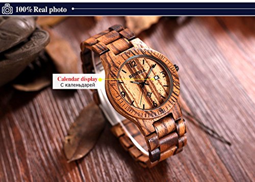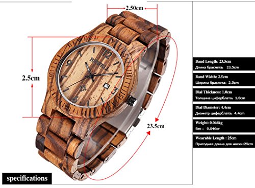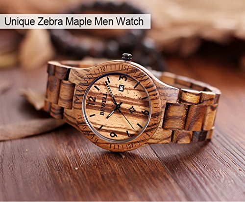 Specification: Vintage Style Men Wooden Watches Eco-Friendly 100% Natural Zebrawood with Calendar