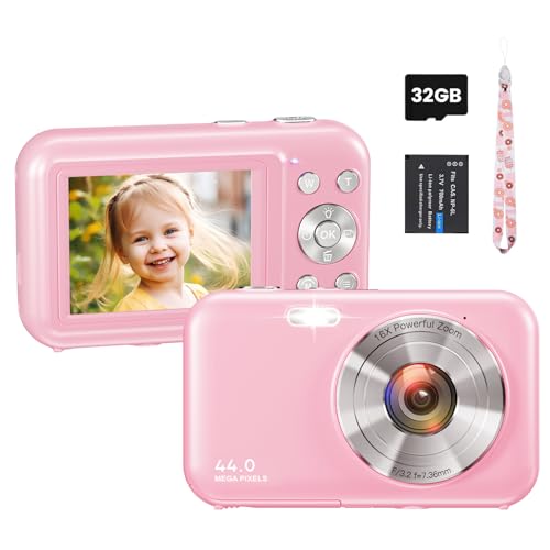 Digital Camera, Kids Camera with 32GB Card, FHD 1080P 44MP Cameras for Photography, 16X Zoom Point and Shoot Cameras Rechargeable Cameras for Kids