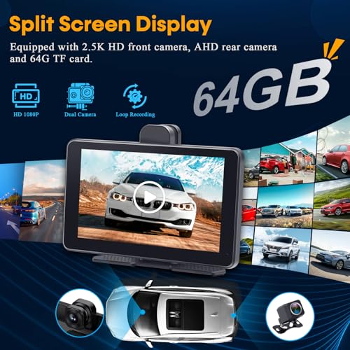【Dual Camera & Video Recording】This apple carplay screen with front and rear dual cameras. With more advanced 22NM chip, Sony image sensor and 6 all-glass lenses. 2.5K 1440P front camera and 1080P rear camera provide clear images, so that you can more easily and accurately read the reckless driver’s license plate information in an accident and record the surroundings and protect your legitimate interests. And it comes with a 64GB TF Card memory saves the videos from both cams.