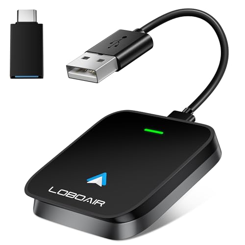 [Sleek and Portable] Wireless CarPlay adapter has sleek and stylish design. Its tiny size and lightweight make it portable. We also comes with a USB to USB-C adapter, which can suit for different cars’ port.
