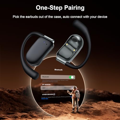 Immersive Sound & Clear Communication: 16.2mm large dynamic driver headphones deliver powerful bass, clear mids, and bright highs that bring every note and detail to life, giving you high-fidelity sound reproduction. Whether you’re enjoying music or making a voice call with OW7 earbuds wireless bluetooth, you’ll be able to be provided with clear audio output. The built-in microphones of open-ear earbuds offer crystal-clear and accurate voice transmission so you’ll be able to enjoy an unobstructed call experience.