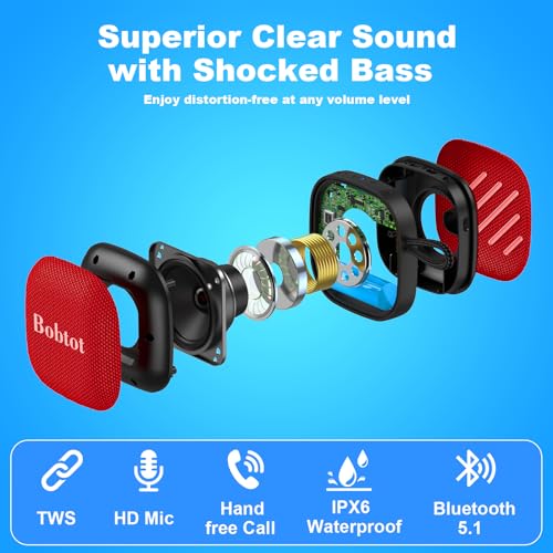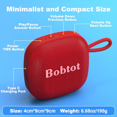 Specification: Bobtot Bluetooth Speaker Portable Wireless Speakers – 16 Hours Playtime Waterproof Speaker, Loud Stereo Sound, Mini Speaker with TWS, Built-in Mic, Strap to Carry for Home Travel Sport, Red