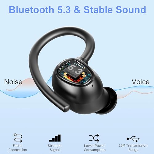 Specification: Wireless Earbud Sport, Wireless Headphones Bluetooth 5.3 Over Ear IP7 Waterproof, In Ear Wireless Earphones Sports with Dual LED Display, Bass Over Ear bud with Earhook for Workout/Running/Gym, Black