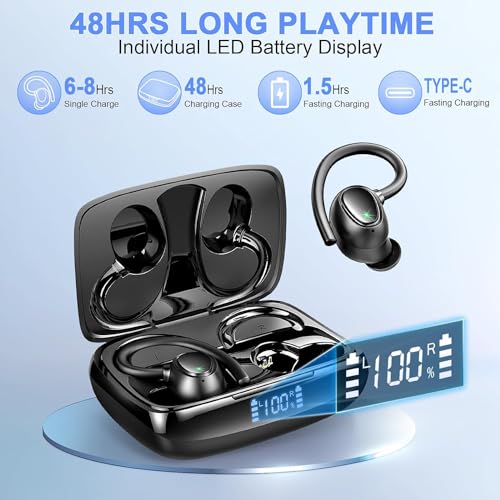 48Hrs Playtime & Dual Power Display: Each ear bud offers up to 8 hours of listening time on a single charge, allowing you to enjoy a total of 48 hours of music by taking turns with the charging case. Wireless earbud feature a dual LED digital display that provides real-time charging case’s remaining power and ear bud wireless bluetooth charging status and plan your usage accordingly. Bluetooth headphones support wired charging with a Type-C cable(included in the package).