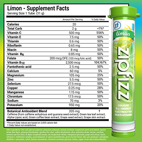 Zipfizz Energy Drink Mix, Electrolyte Hydration Powder with B12 and Multi Vitamin, Limon (20 Count)
