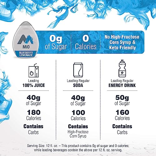 MiO Naturally Flavored Blueberry Lemonade Liquid Water Enhancer transforms undeniable water into a refreshing, flavorful drink to invigorate your day. A single squeeze of the bottle delivers a burst of bold lemon berry flavor. MiO blueberry lemonade flavor liquid drink mix provides a burst of flavor with zero calories. The portable 1.62 fluid ounce bottle neatly fits to your purse, bag or glove box for simple on-the-go mixing. With only one squeeze, MiO liquid lemon blueberry water enhancer provides enough bold flavor for 8 fluid ounces! Whether or not you are studying, working or heading to workout, add MiO Blueberry Lemonade on your water for delicious citrus blueberry flavored water that assists in keeping you sipping.