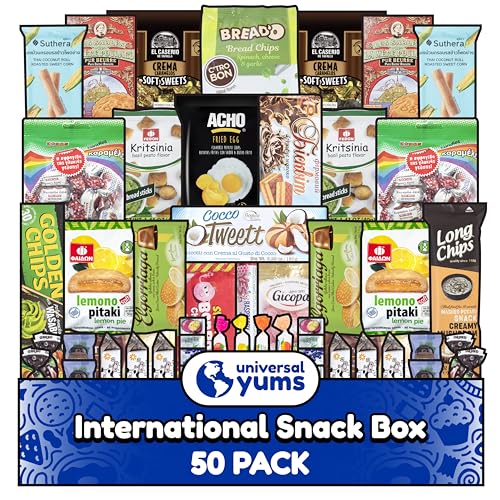 Universal Yums International Snack Box | Variety Pack Of Chips, Candy, Chocolates, And Snacks From Around The World | Foreign Snacks For Office, Family, Gifts, And Parties | (50 Exotic Snacks)