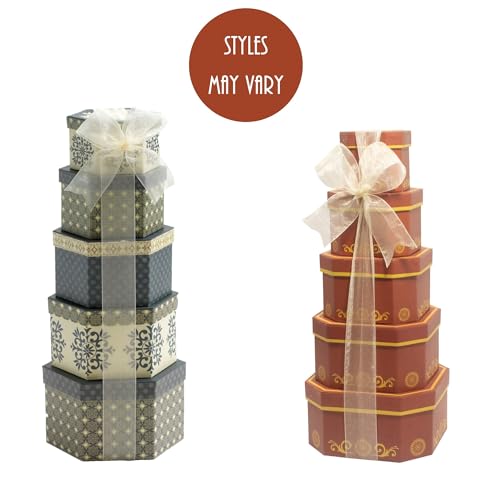 REUSABLE CONTAINER: This gift tower measures 6″ x 6″ x 15″ and includes 5 coordinating, stacked boxes. Reuse for decoration or storage for photos, mementos, and household items. Each and every gift includes a gift tag for a personalized touch.