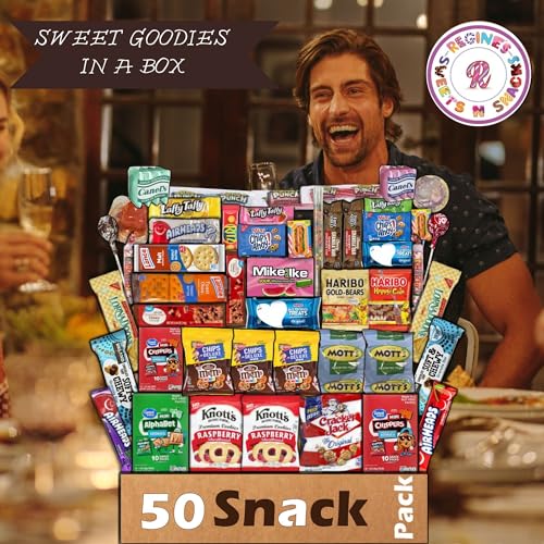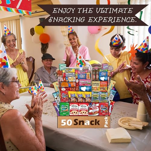 Snack Box Care Package Candy Variety Pack (50 Counts) for Kids Adults Teens Family College Student โ Care Food Birthday Assortment Candy Chips Cookies Snack Pack Breakfast Bars- Easter Gift Basket